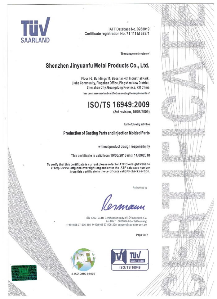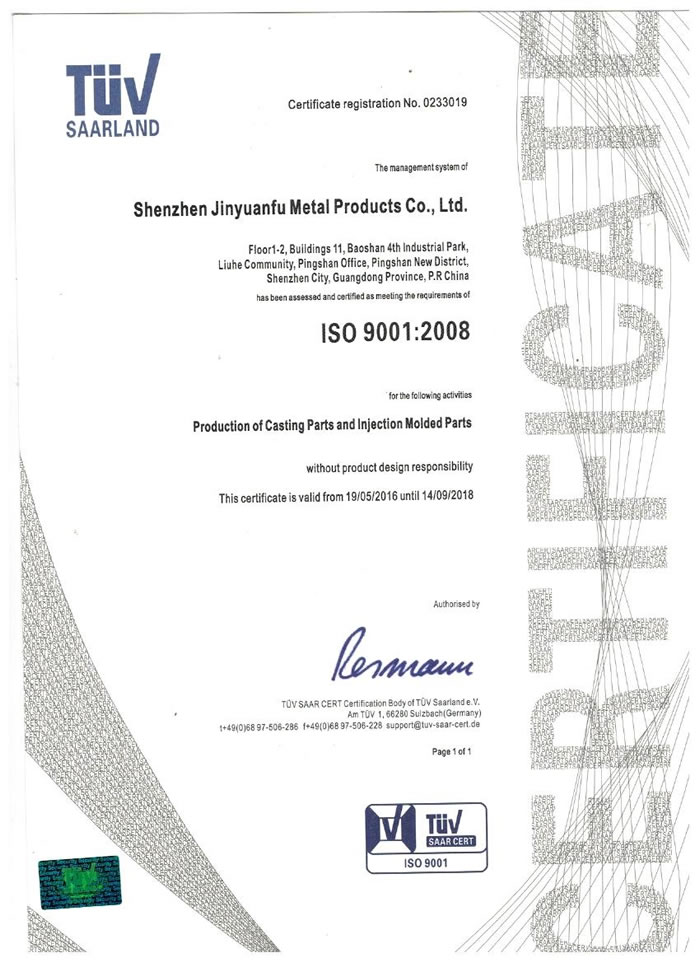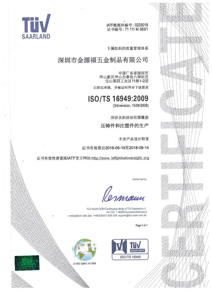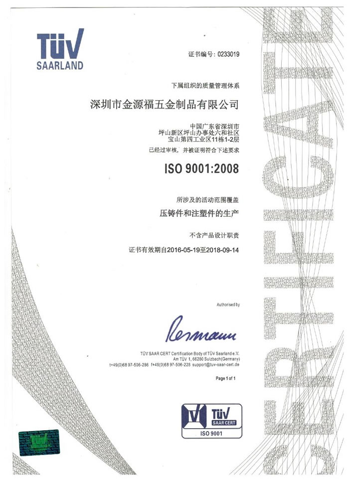 深圳市金源福五金制品有限公司成立于2003年。公司擁有8000多平方米生產(chǎn)廠地、開發(fā)與管理精英人才、技術(shù)專業(yè)、設(shè)備精良、交通便利、服務(wù)周全、具體設(shè)計(jì)、開發(fā)、制模、出樣、生產(chǎn)到成品出貨一體化模式生產(chǎn)廠家。已通過(guò)ISO9001:2008ISO1440/TS16949:2009國(guó)際質(zhì)量體系認(rèn)證。專業(yè)生產(chǎn)鋅合金壓鑄、鋁合金壓鑄產(chǎn)品、汽車配件、汽車后視鏡支架、車載導(dǎo)航散熱器、LED散熱器、LED燈罩、數(shù)碼電子五金結(jié)構(gòu)件、家具五金裝飾件、標(biāo)牌(LOGO)等五金壓鑄產(chǎn)品。